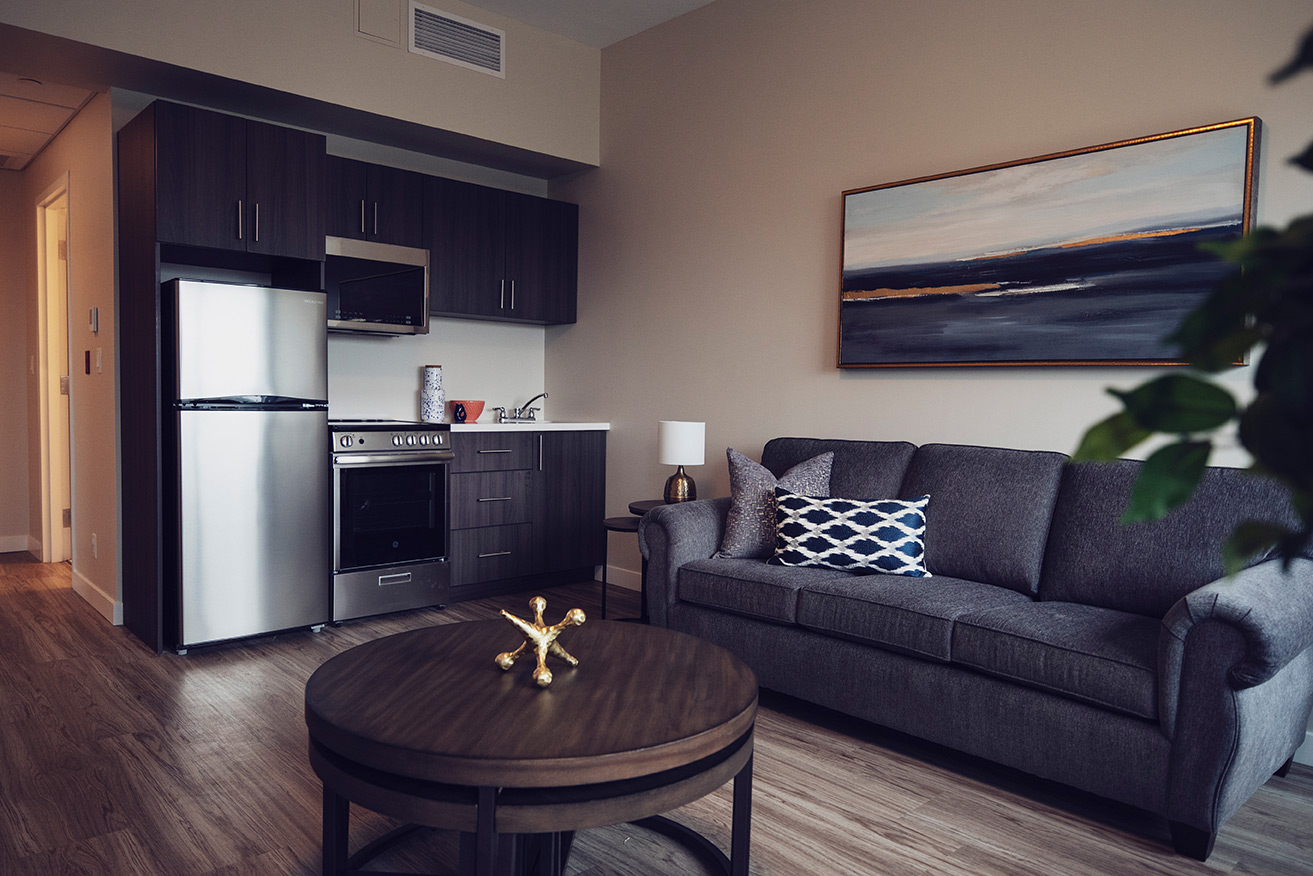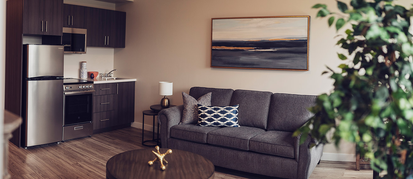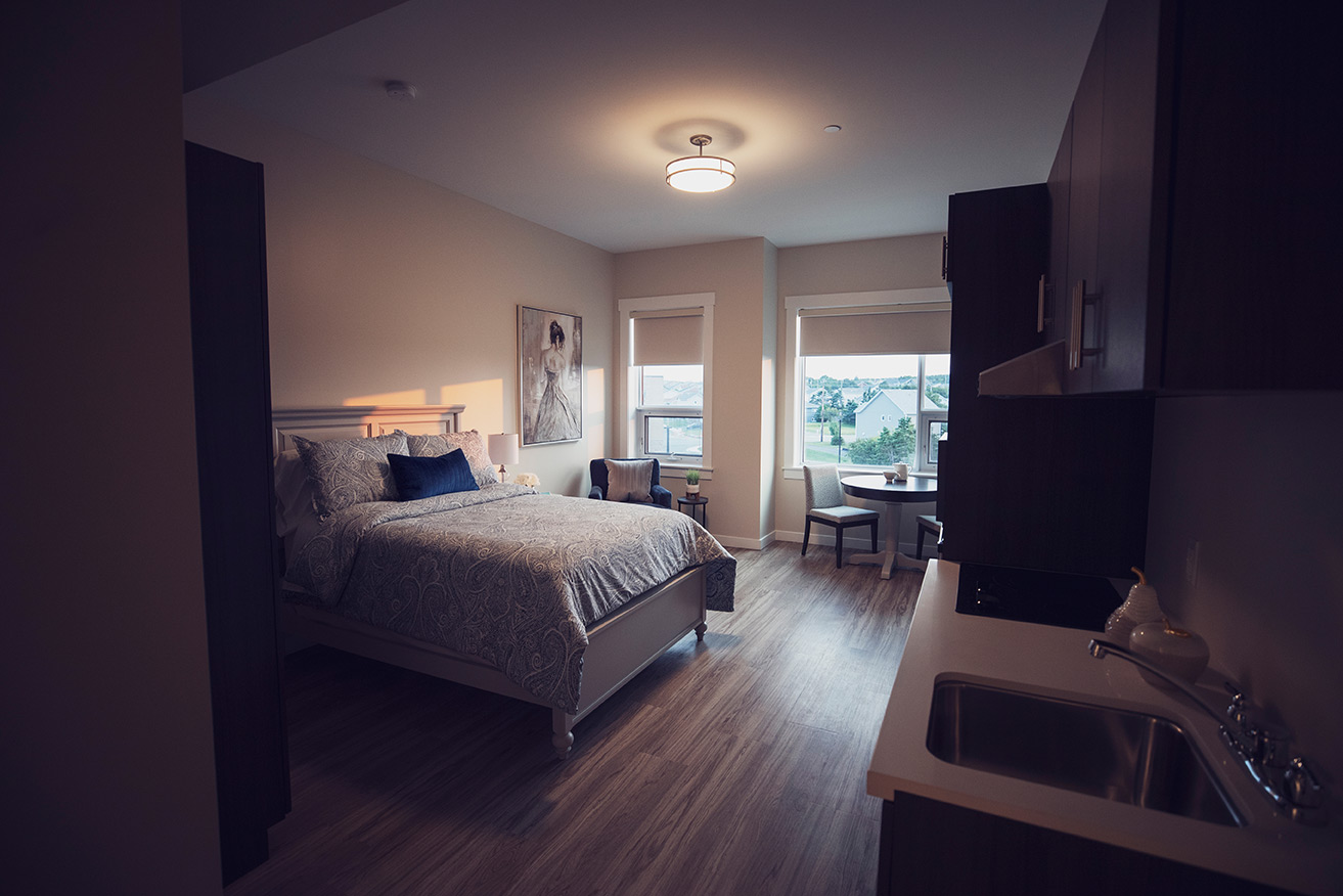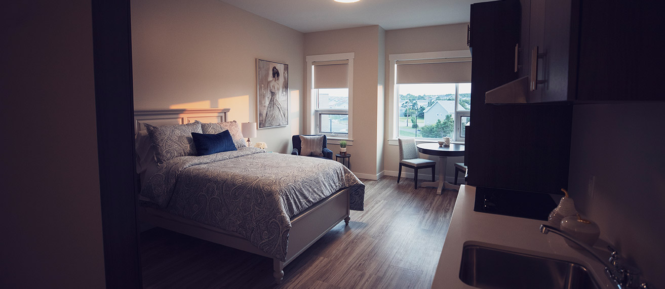 We understand how important your personal living space is. That’s why we offer many suite options: So that you can find the layout that’s right for you. All of our suites include personalized temperature control (with air conditioning), your choice of walk-in tub or shower, a wall mounted TV, roller shades for your sun lit windows and plenty of wardrobe storage. And your fully functioning kitchenette / dining area enables you to have that dine-at-home experience whenever it feels right.